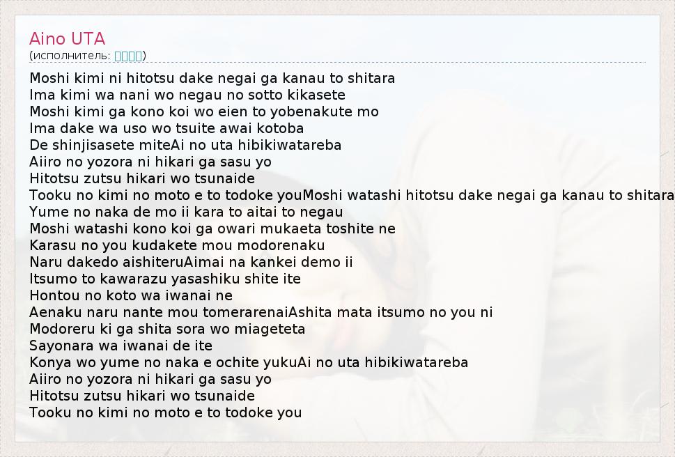 А как ты думаешь, о чем песня "Aino UTA" ?