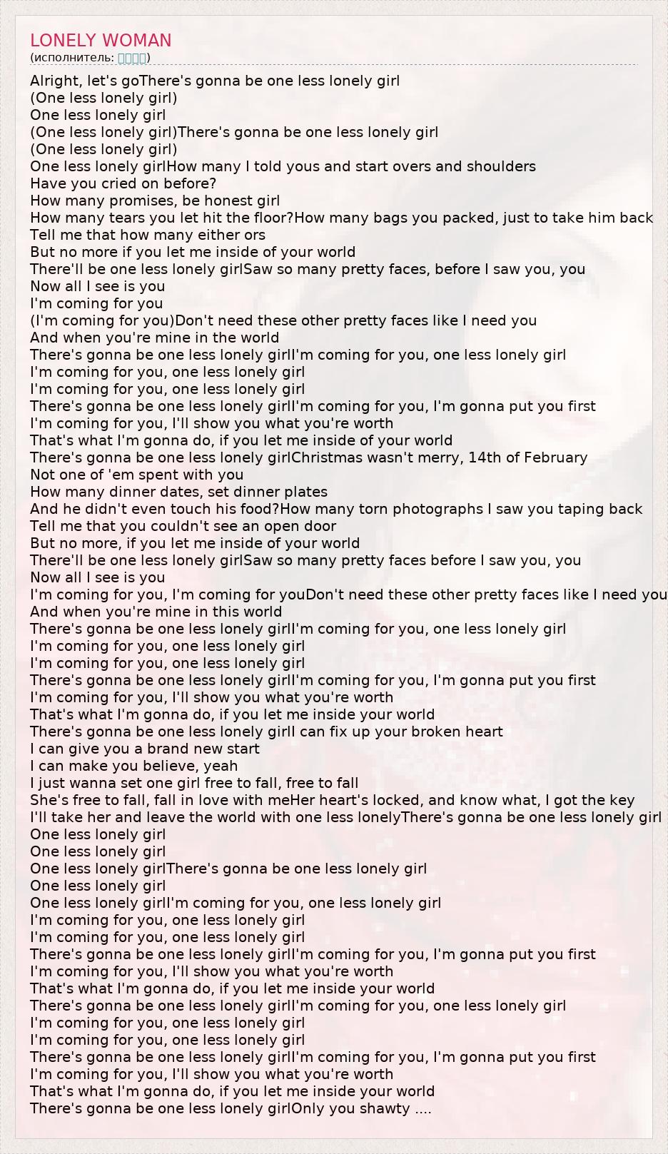 А как ты думаешь, о чем песня "LONELY WOMAN" ?