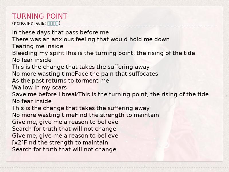 А как ты думаешь, о чем песня "TURNING POINT" ?