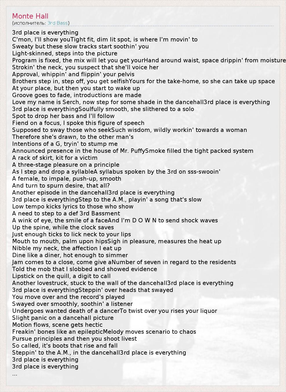А как ты думаешь, о чем песня "Monte Hall" ?