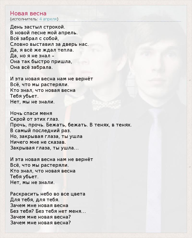 В новой песне мой апрель.