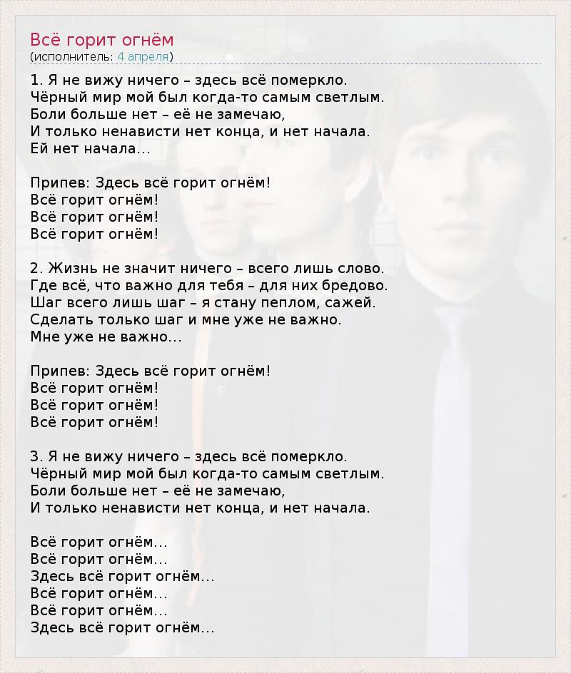 ГлавнаяИсполнители4 апреляВсё горит огнём