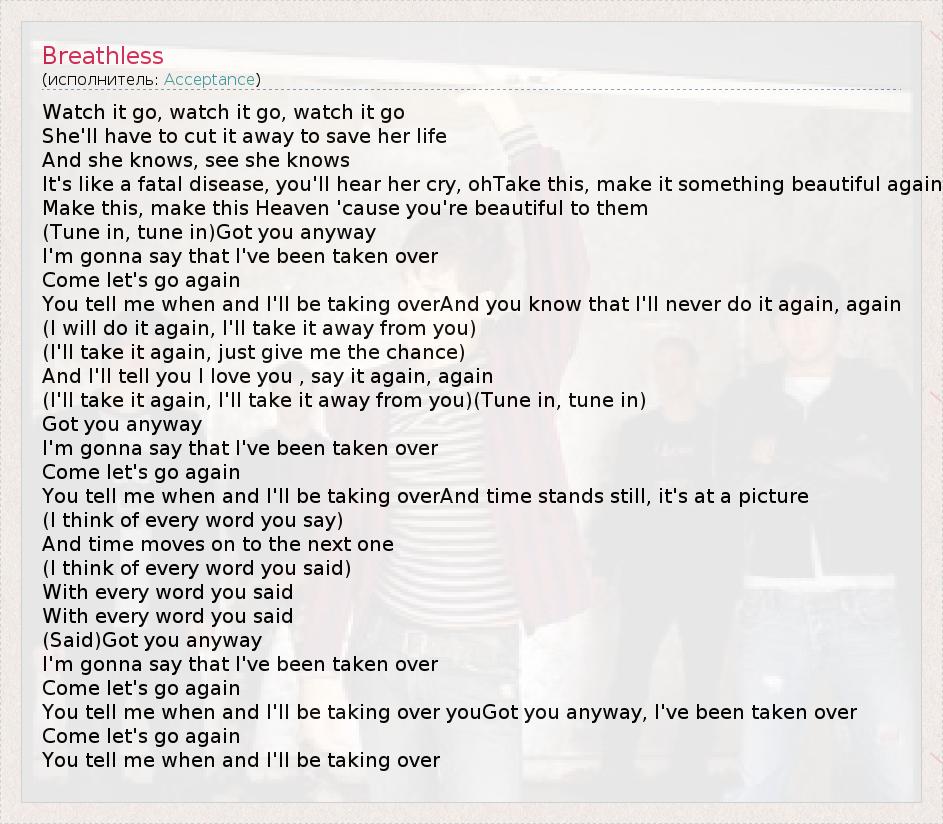 А как ты думаешь, о чем песня "Breathless" ?