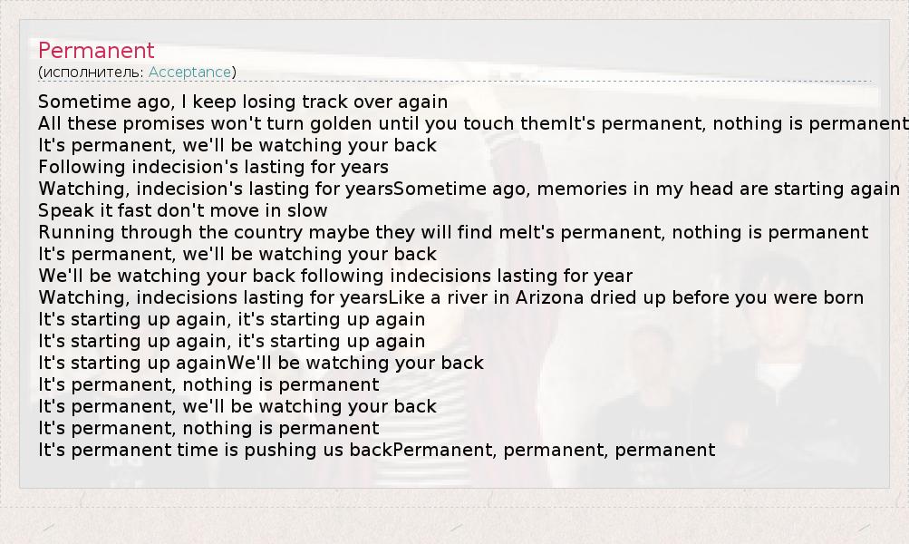 А как ты думаешь, о чем песня "Permanent" ?