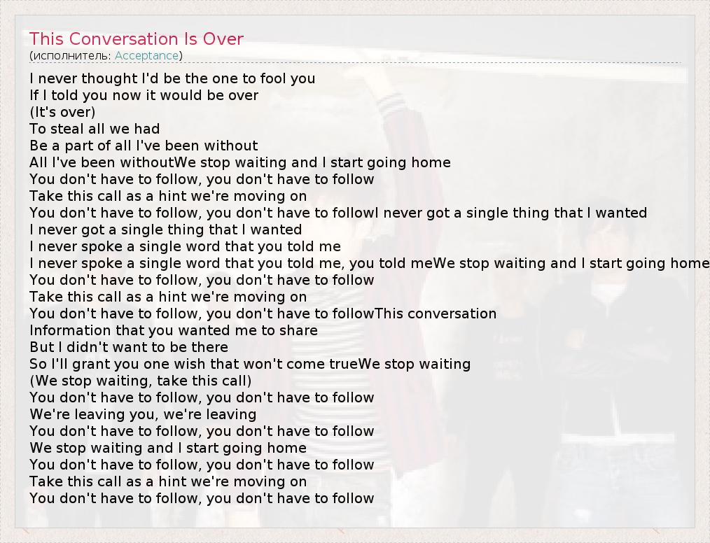 ГлавнаяИсполнителиAcceptanceThis Conversation Is Over