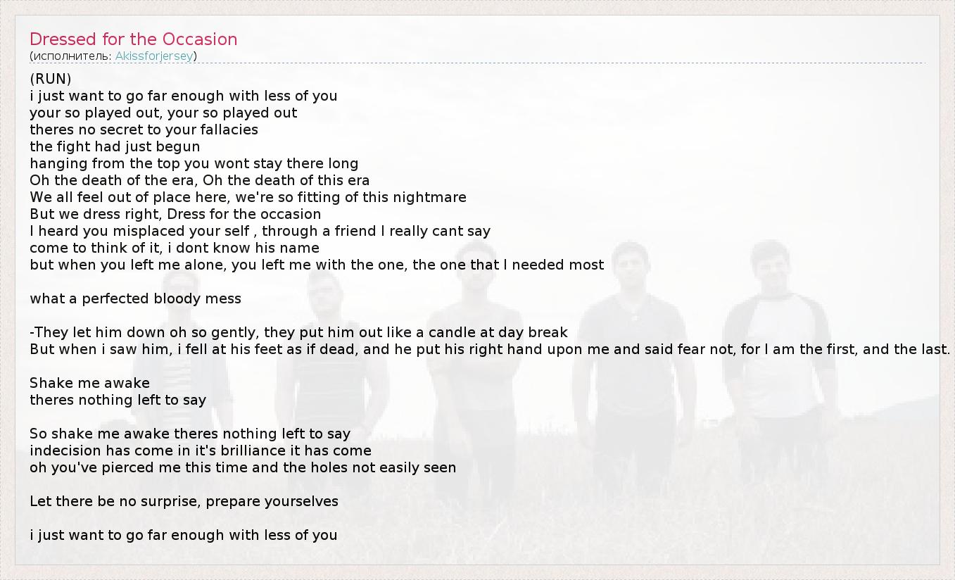 А как ты думаешь, о чем песня "Dressed for the Occasion" ?