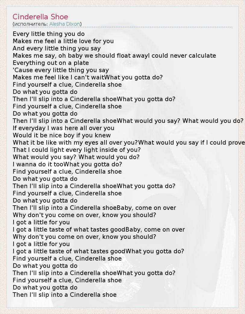А как ты думаешь, о чем песня "Cinderella Shoe" ?