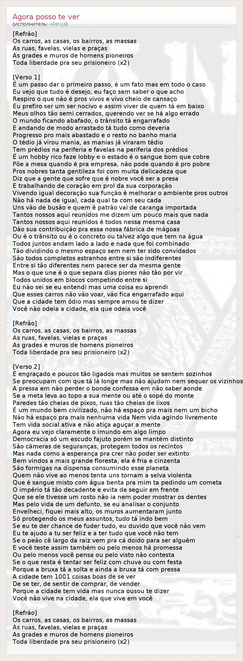 А как ты думаешь, о чем песня "Agora posso te ver" ?