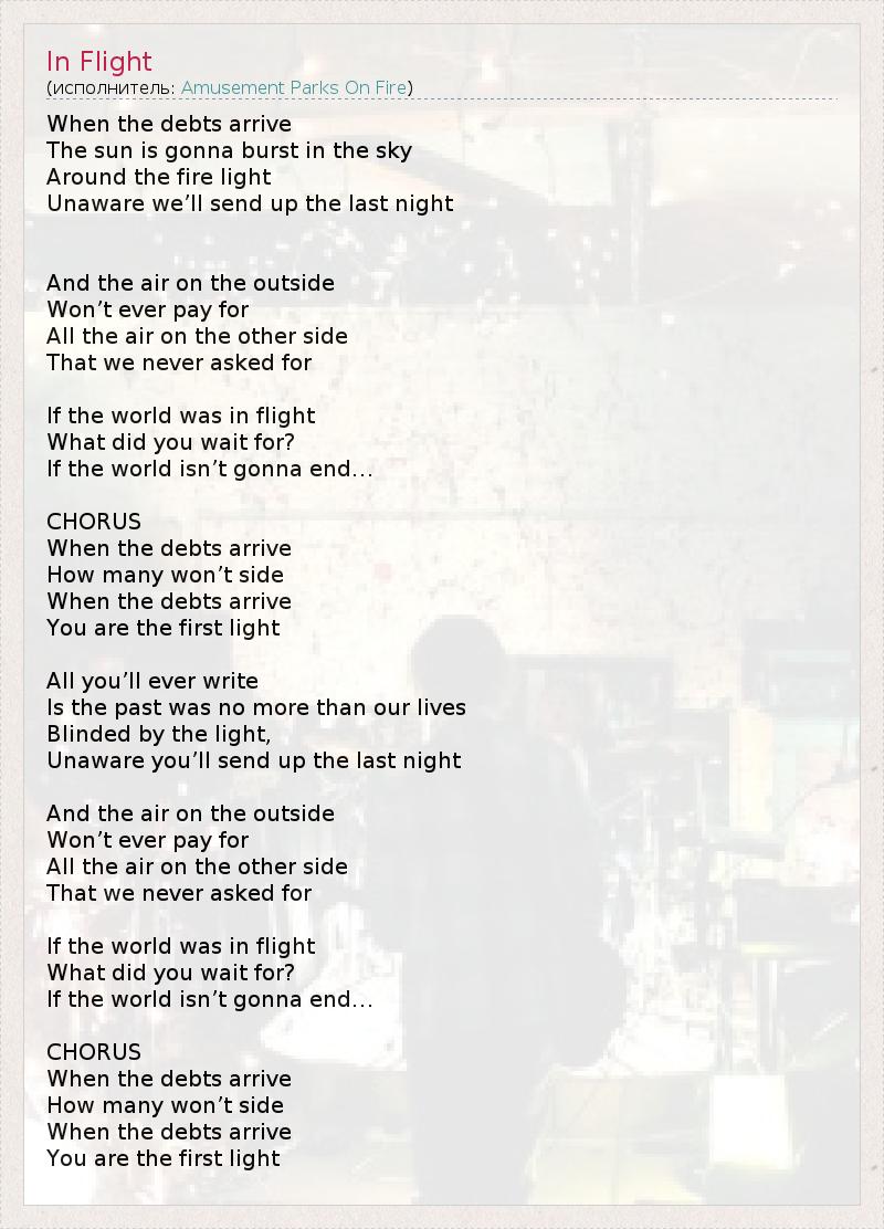 А как ты думаешь, о чем песня "In Flight" ?