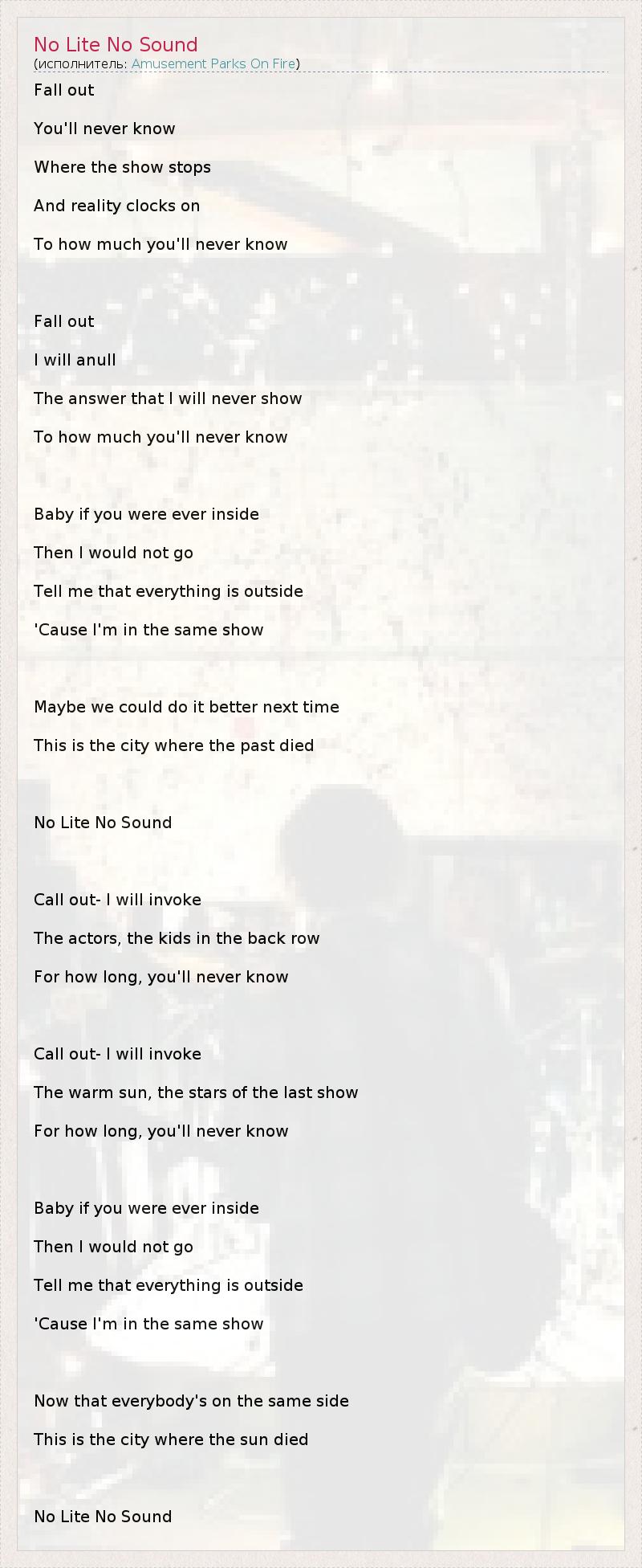 А как ты думаешь, о чем песня "No Lite No Sound" ?