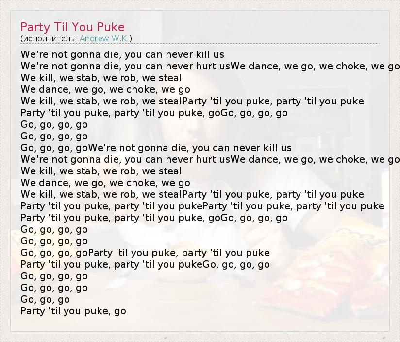 А как ты думаешь, о чем песня "Party Til You Puke" ?