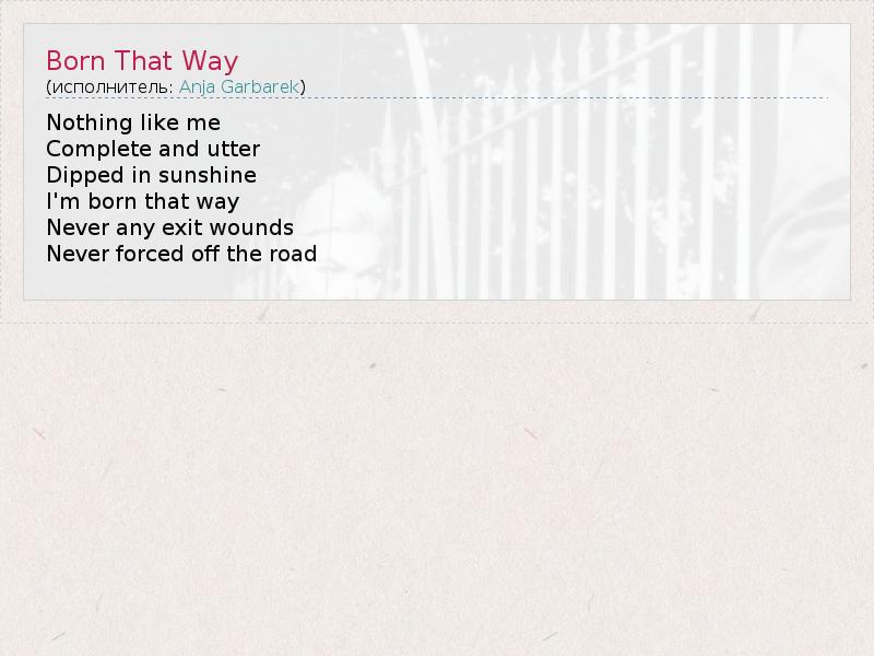 Это интересно:Аня Гарбарек (родилась 24 июля 1970 г.), певица и автор песен из Норвегии. Аня — дочка норвежского джазового саксофониста Яна Гарбарека, выросла в окрестностях Осло. Она выпустила три англоязычных альбома: «Ballon Mood», «Smiling and Waving» и «Briefly Shaking». Её дебютный альбом «Velkommen Inn» был... продолжение