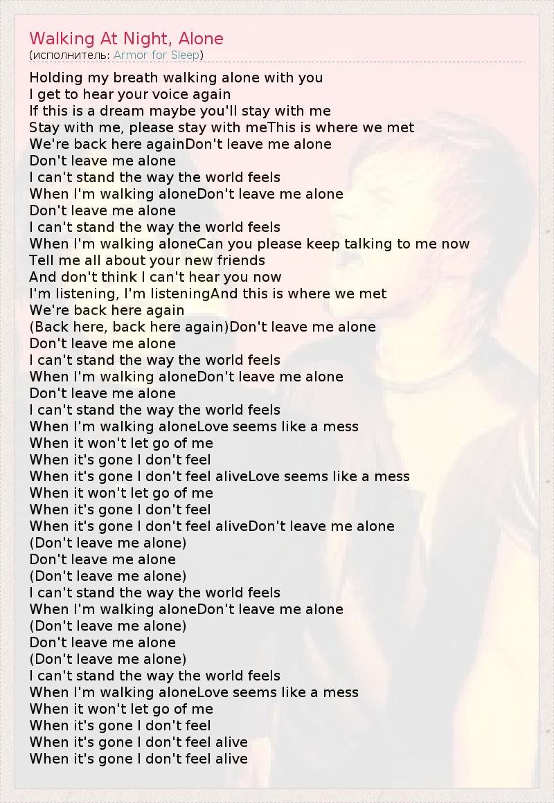 А как ты думаешь, о чем песня "Walking At Night, Alone" ?
