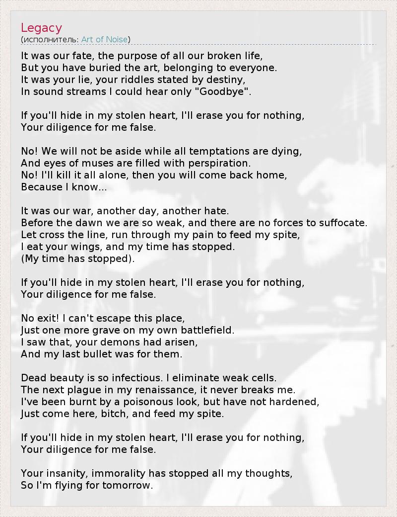А как ты думаешь, о чем песня "Legacy" ?