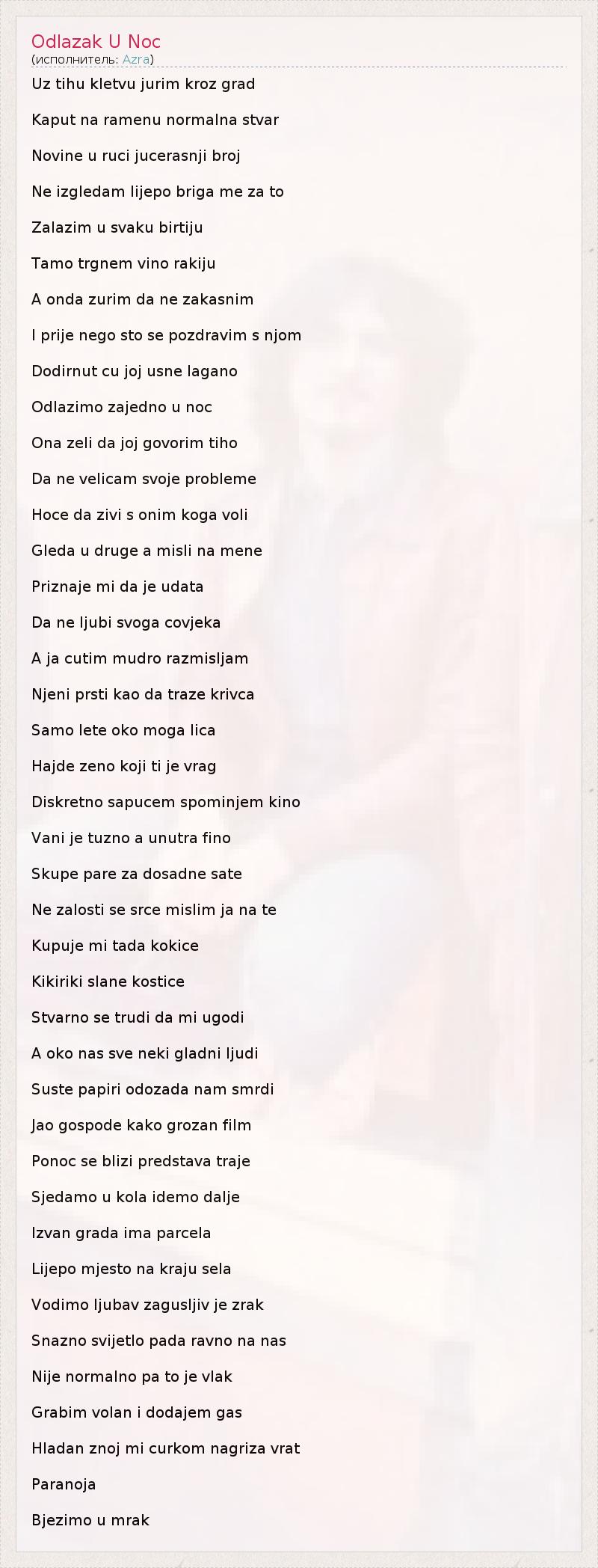 А как ты думаешь, о чем песня "Odlazak U Noc" ?