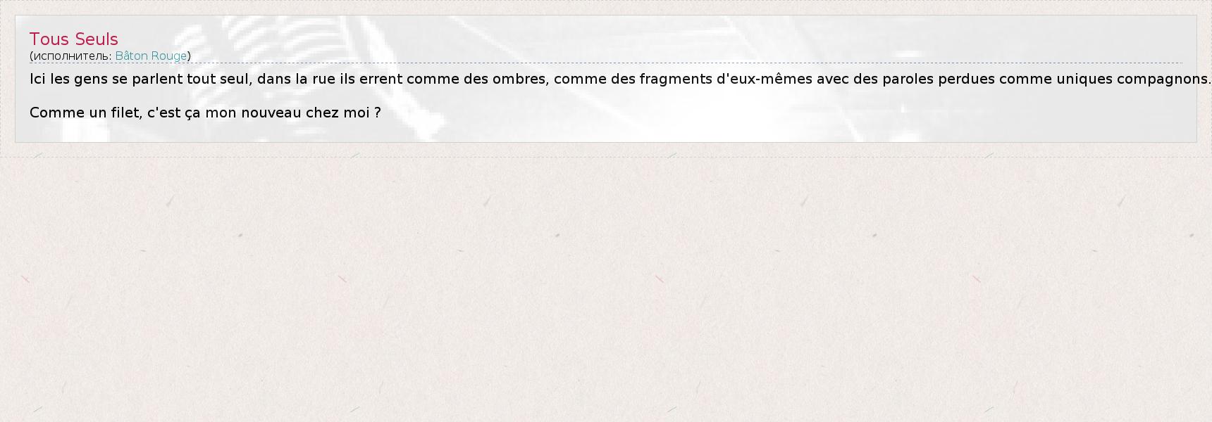 А как ты думаешь, о чем песня "Tous Seuls" ?