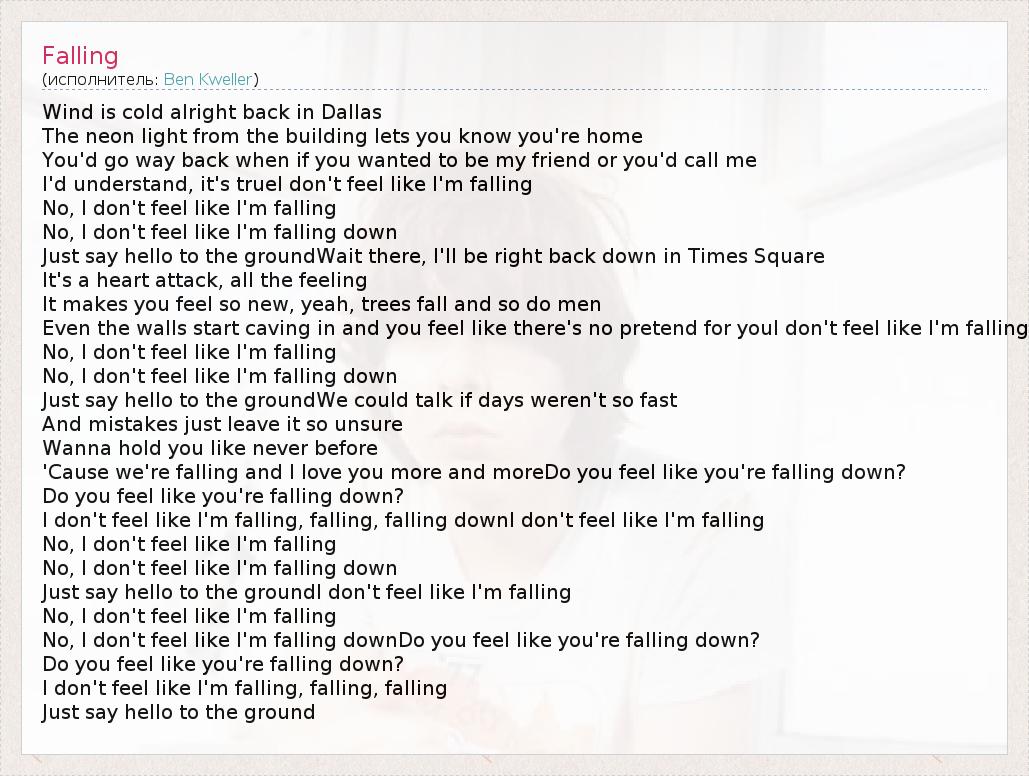 Even the walls start caving in and you feel like there's no pretend for youI don't feel like I'm falling