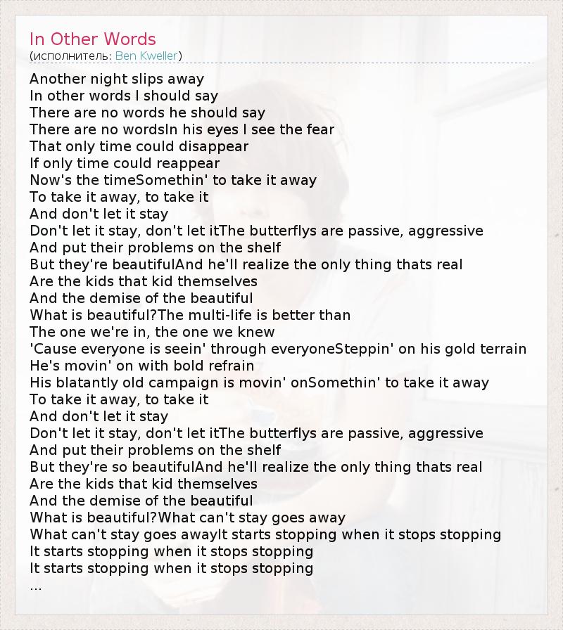 А как ты думаешь, о чем песня "In Other Words" ?