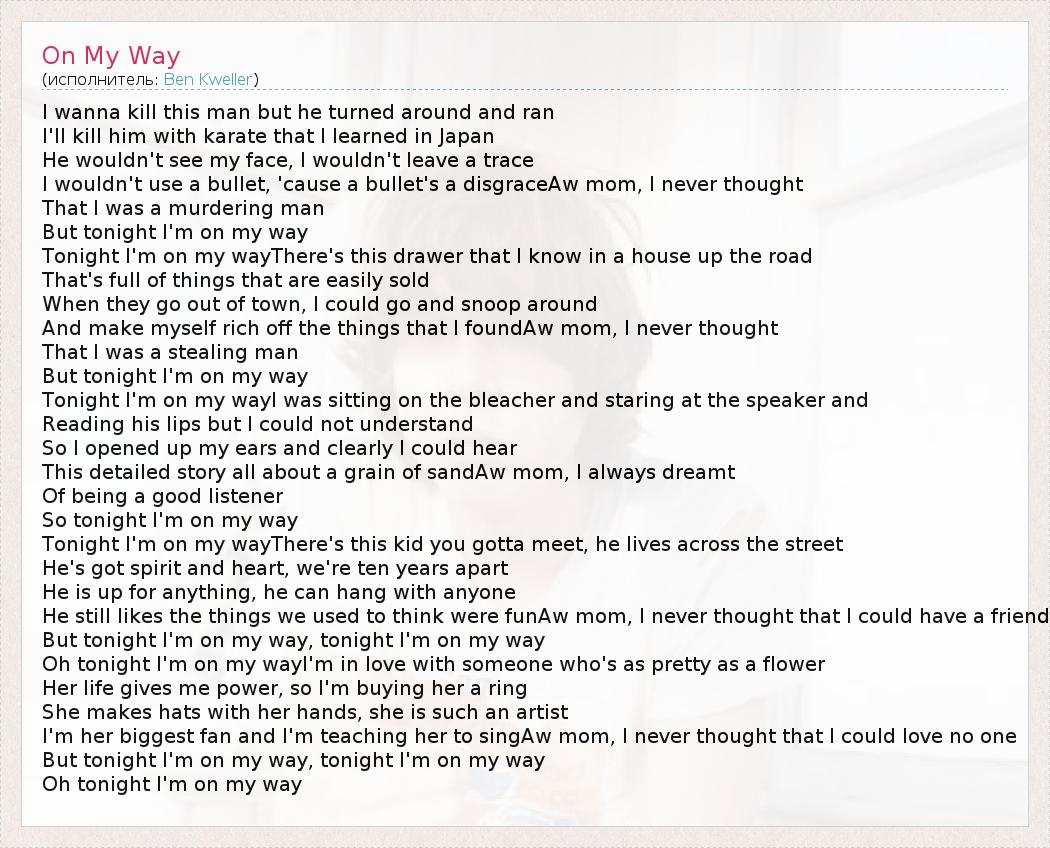А как ты думаешь, о чем песня "On My Way" ?
