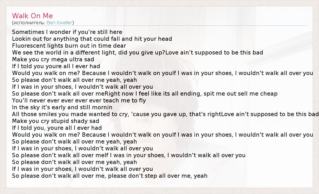 So please don't walk all over meIf I was in your shoes, I wouldn't walk all over you
