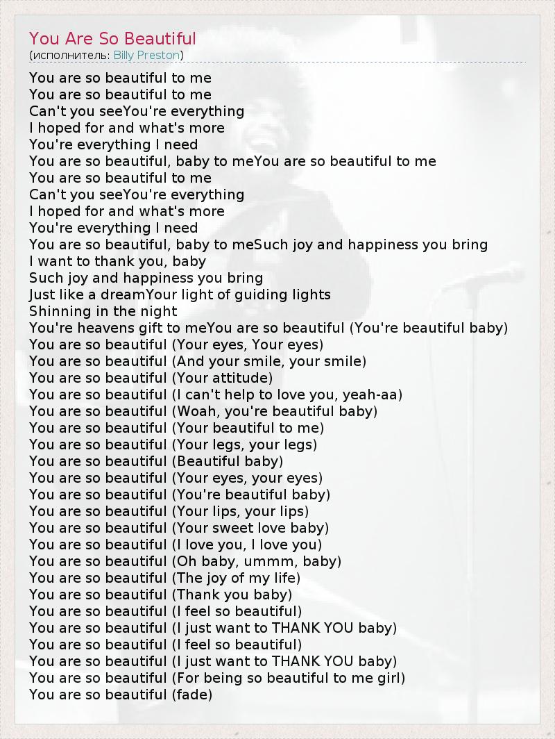 А как ты думаешь, о чем песня "You Are So Beautiful" ?