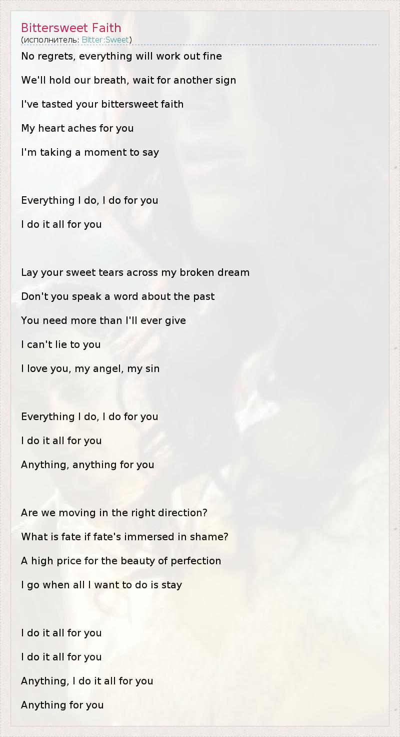 А как ты думаешь, о чем песня "Bittersweet Faith" ?