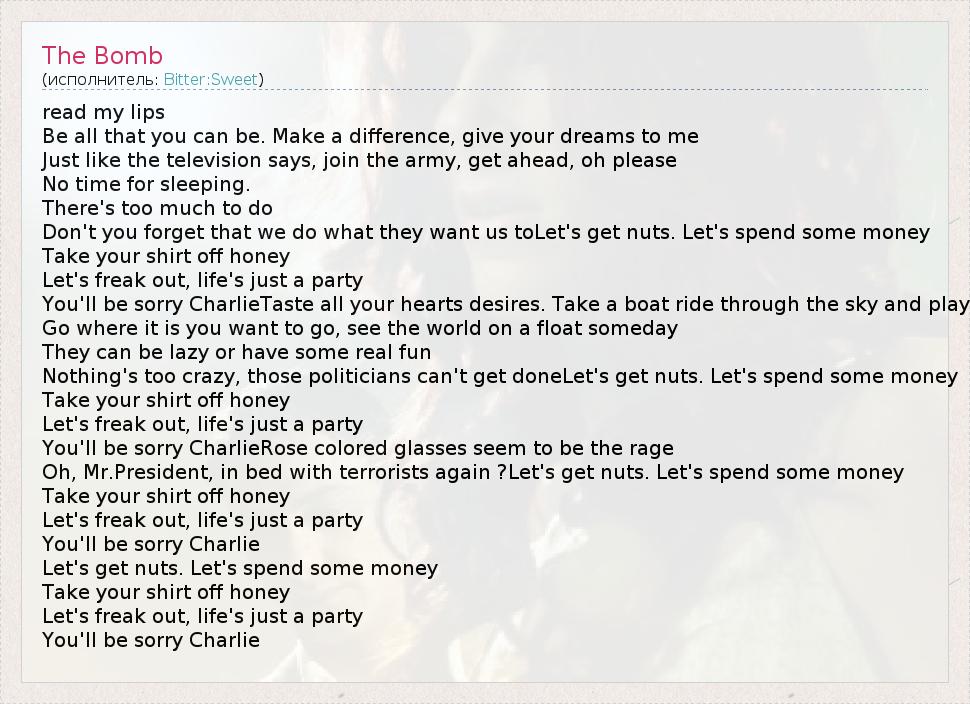 Это интересно:Bitter:Sweet - американский дуэт, состоящий из Shana Halligan, которая отвечает за вокал, лирику и пишущую песни, и мультиинструменталиста Kiran Shahani, который продюссирует и также пишет песни. Играют смесь электроники, трип-хопа и джаза под прекрасный чувственный вокал. Под эту музыку можно и танцевать и расслабляться.