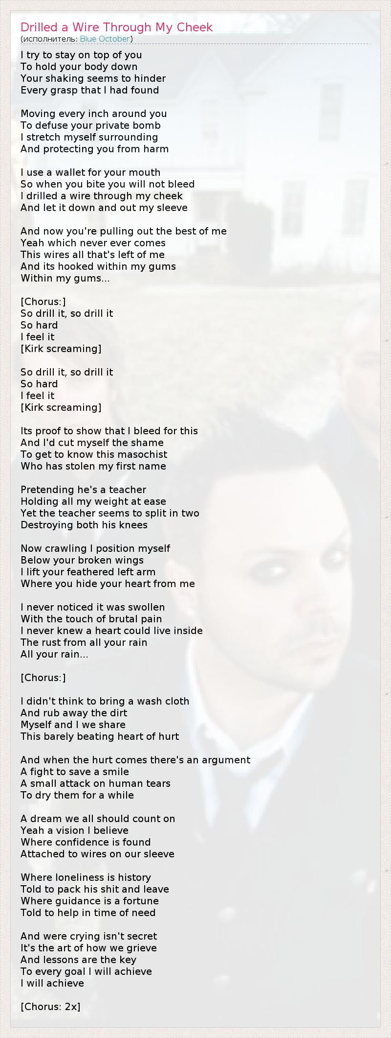 ГлавнаяИсполнителиBlue OctoberDrilled a Wire Through My Cheek