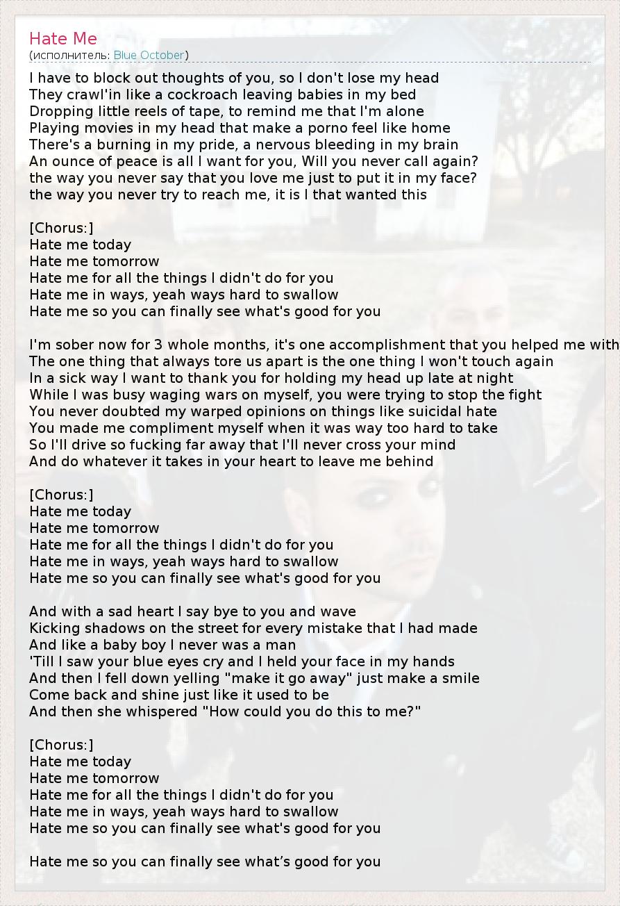 Первым синглом с альбома стала песня Hate Me. Премьера клипа состоялась на VH1, и песня добралась до второго места в чарте «Modern Rock» журнала Billboard.