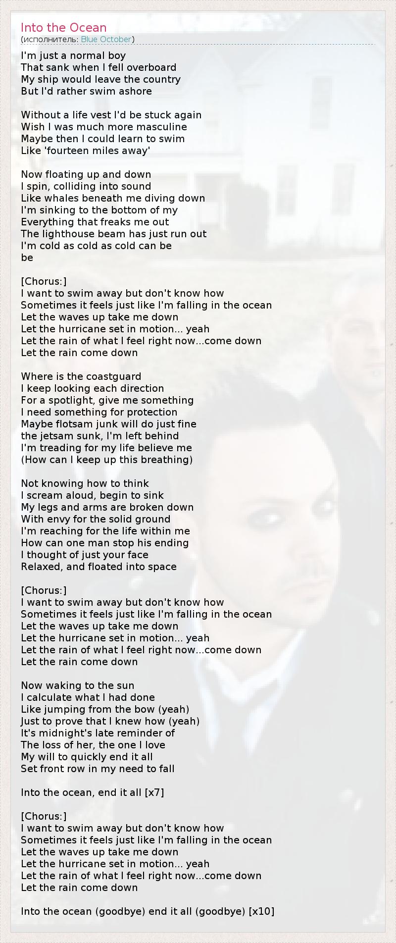 А как ты думаешь, о чем песня "Into the Ocean" ?