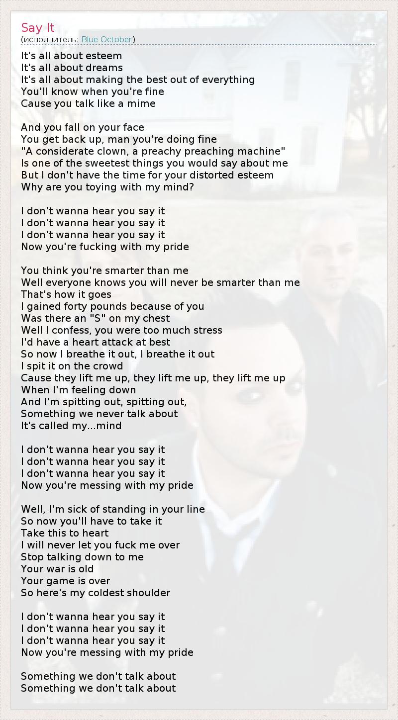 I don't wanna hear you say it