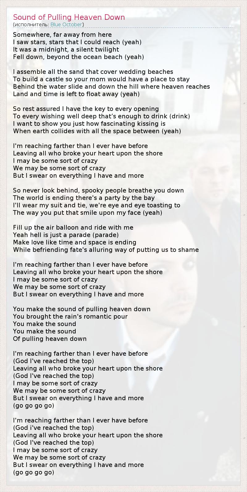 А как ты думаешь, о чем песня "Sound of Pulling Heaven Down" ?