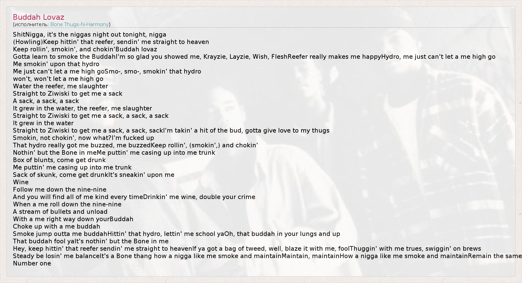 А как ты думаешь, о чем песня "Buddah Lovaz" ?