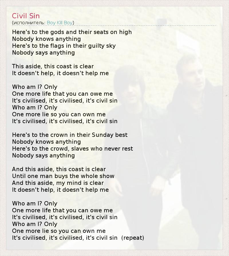 А как ты думаешь, о чем песня "Civil Sin" ?