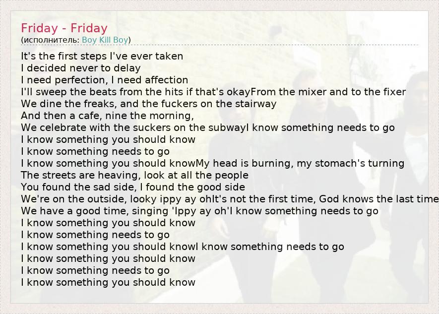 А как ты думаешь, о чем песня "Friday - Friday" ?