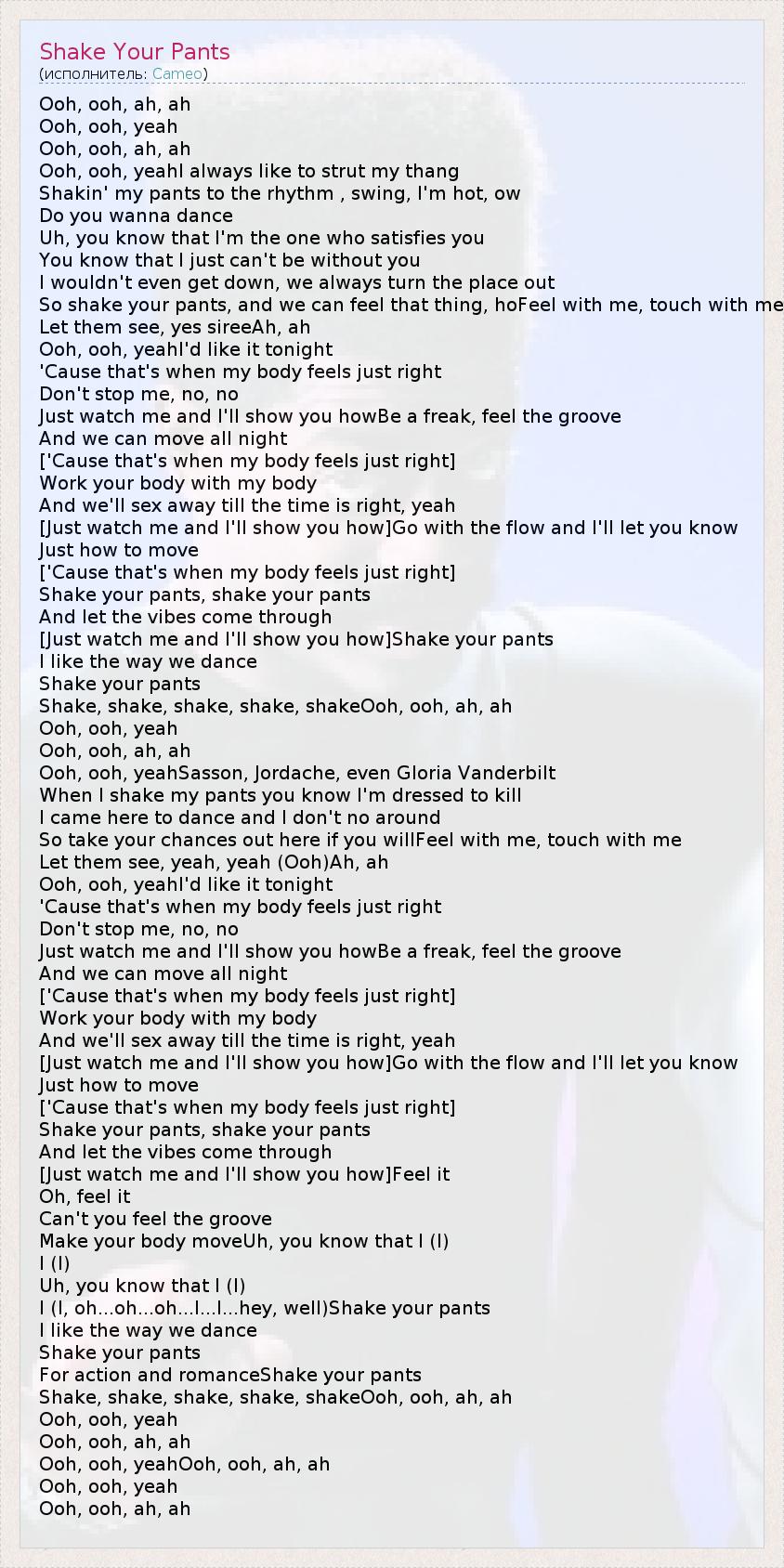 А как ты думаешь, о чем песня "Shake Your Pants" ?