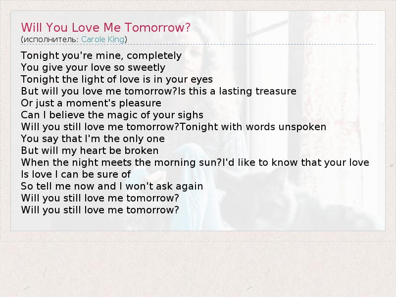 А как ты думаешь, о чем песня "Will You Love Me Tomorrow?" ?