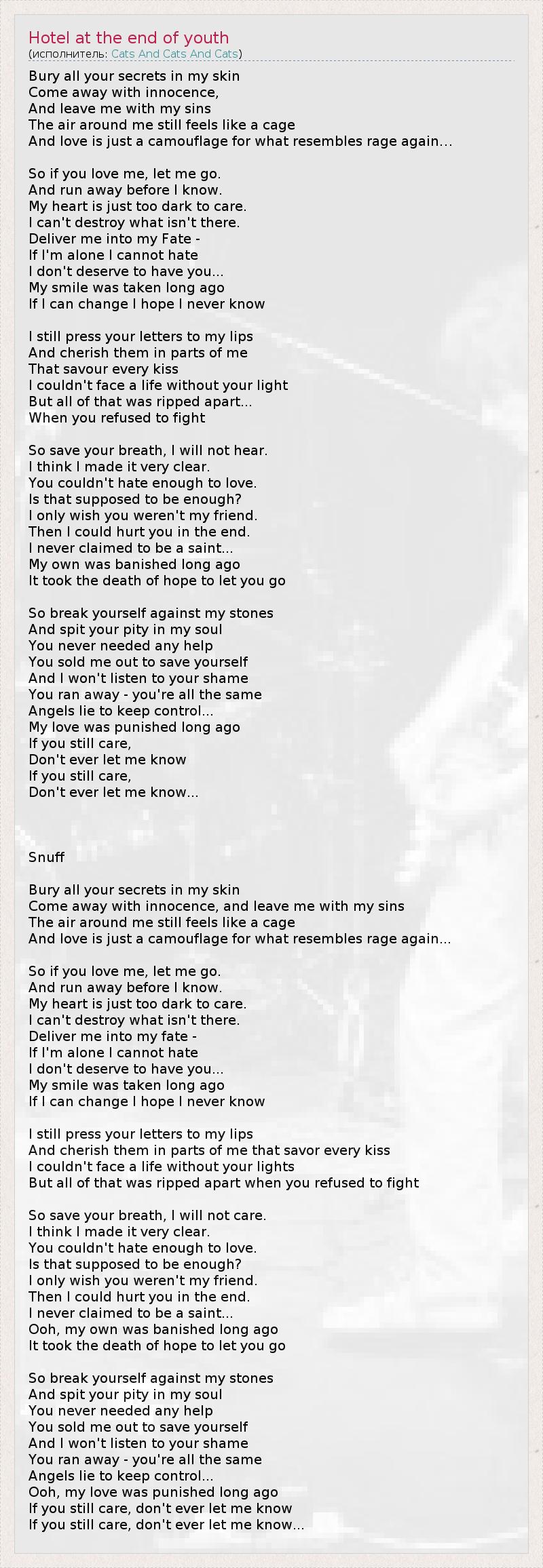 А как ты думаешь, о чем песня "Hotel at the end of youth" ?