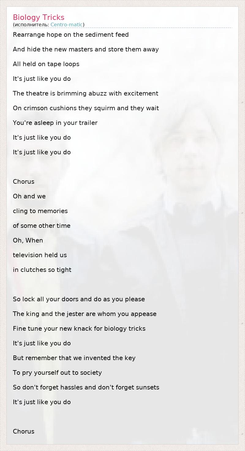 А как ты думаешь, о чем песня "Biology Tricks" ?