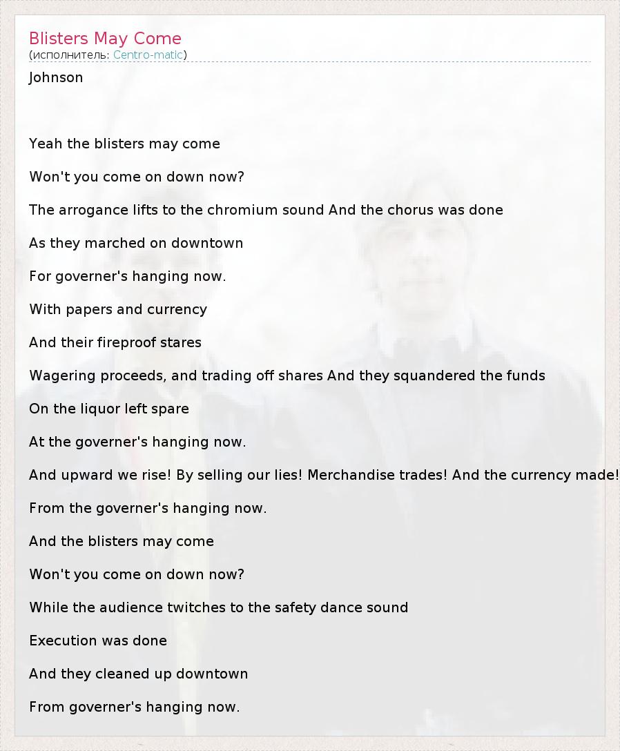 А как ты думаешь, о чем песня "Blisters May Come" ?