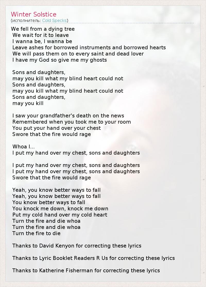 А как ты думаешь, о чем песня "Winter Solstice" ?