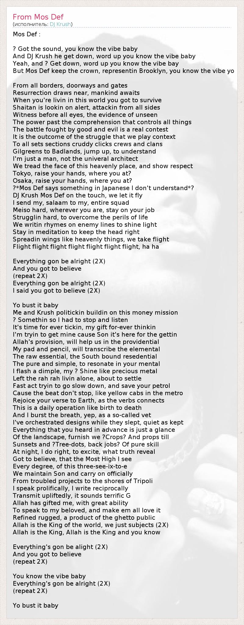 А как ты думаешь, о чем песня "From Mos Def" ?