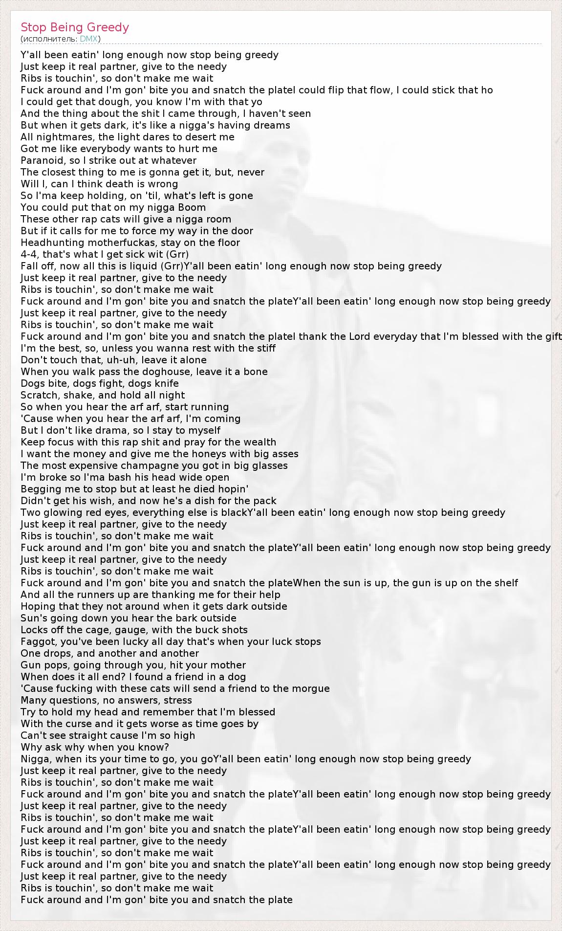 А как ты думаешь, о чем песня "Stop Being Greedy" ?
