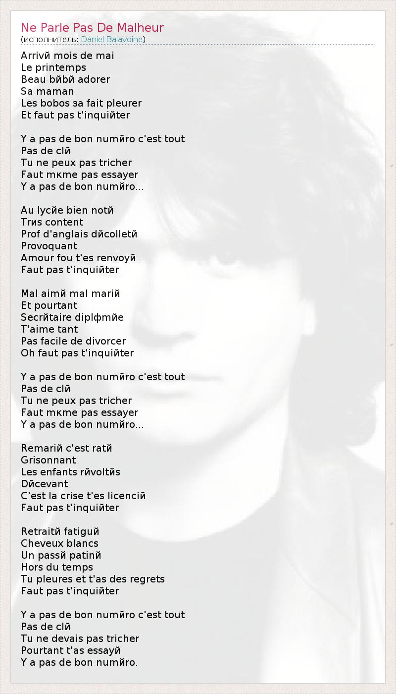 А как ты думаешь, о чем песня "Ne Parle Pas De Malheur" ?