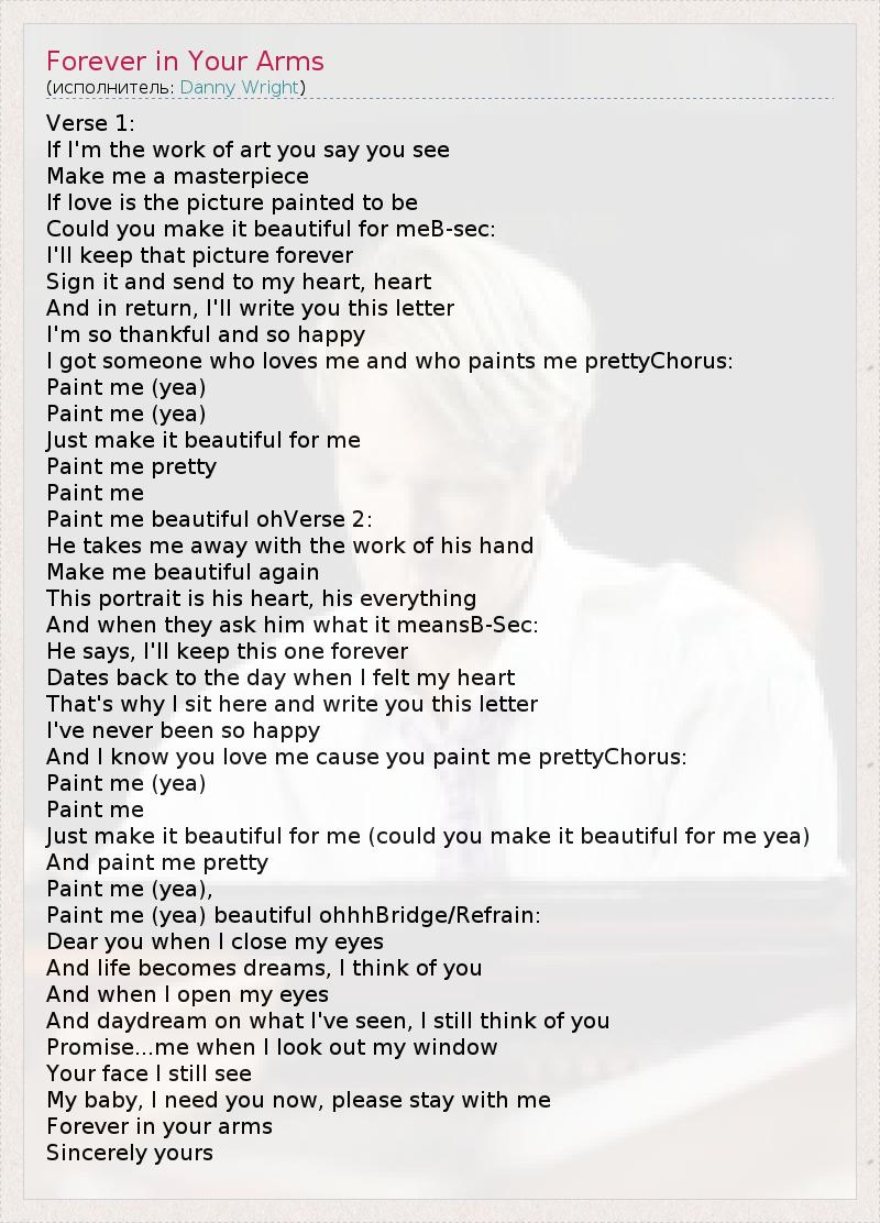 Verse 1: If I'm the work of art you say you see Make me a masterpiece If love is the picture painted to be Could you make it beautiful for meB-sec: I'll keep that picture forever Sign it and send to my heart, heart And in return, I'll write you this letter I'm so thankful and so happy I got someone who loves me and who paints me prettyChorus: Paint me (yea) Paint me (yea) Just make it beautiful for me Paint me pretty Paint me Paint me beautiful ohVerse 2: He takes me away with the work of his hand Make me beautiful again This portrait is his heart, his everything And when they ask him what it meansB-Sec: He says, I'll keep this one forever Dates back to the day when I felt my heart That's why I sit here and write you this letter I've never been so happy And I know you love me cause you paint me prettyChorus: Paint me (yea) Paint me Just make it beautiful for me (could you make it beautiful for me yea) And paint me pretty Paint me (yea), Paint me (yea) beautiful ohhhBridge/Refrain: Dear you when I close my eyes And life becomes dreams, I think of you And when I open my eyes And daydream on what I've seen, I still think of you Promise...me when I look out my window Your face I still see My baby, I need you now, please stay with me Forever in your arms Sincerely yours