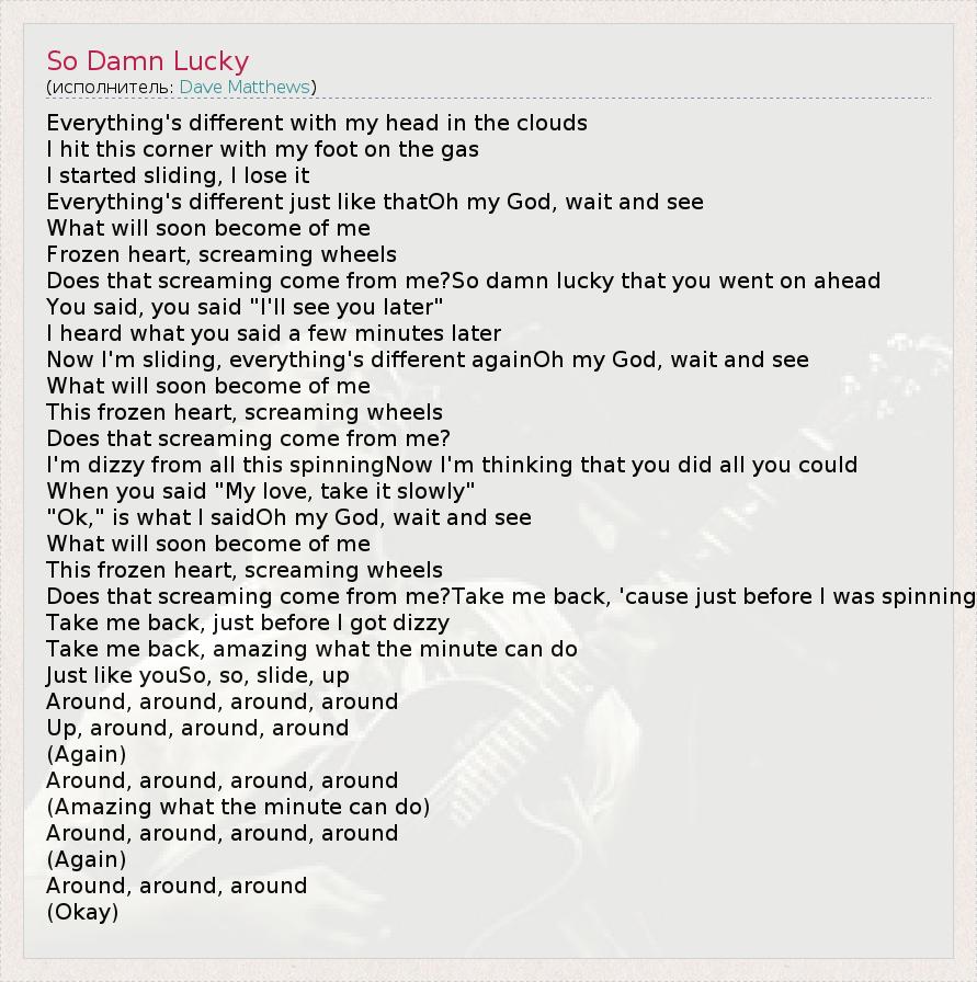А как ты думаешь, о чем песня "So Damn Lucky" ?