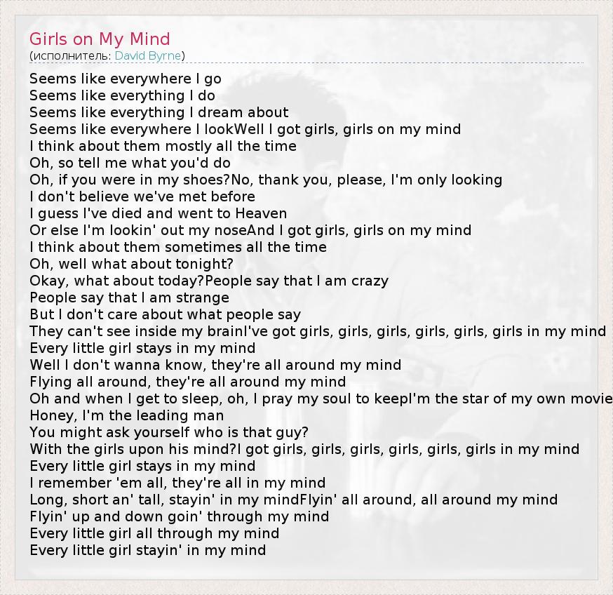 А как ты думаешь, о чем песня "Girls on My Mind" ?