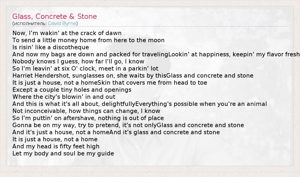 А как ты думаешь, о чем песня "Glass, Concrete & Stone" ?