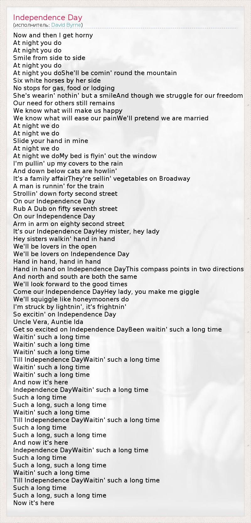 Это интересно:Дэвид Бирн (David Byrne) родился в Дамбартоне, Шотландия, 14 мая 1952 года. Когда ему было 2 года, вместе со своими родителями он переехал в Канаду, где его отцу и матери предложили выгодную работу. Когда Дэвиду было 9 лет, он вместе со своей семьей вновь меняет место жительства. На сей раз они перебираются к предместьям Балтимора Штата Мэриленд. В сентябре 1970 года закончив высшую школу, Дэвид... продолжение