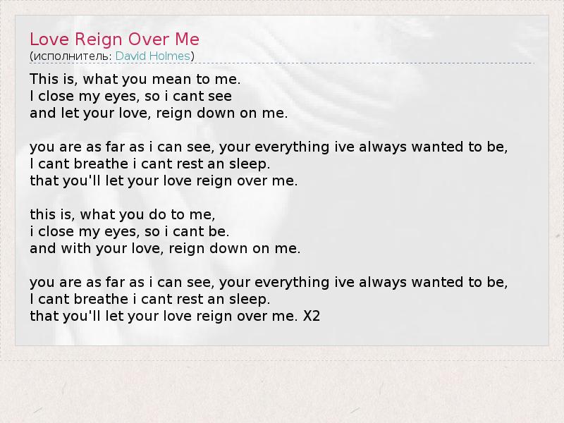 А как ты думаешь, о чем песня "Love Reign Over Me" ?